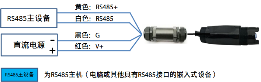 RS485接口型 Modbus协议 | 红色(V+): 电源正 黑色(G): 电源地 黄色(T+): RS485+/A/T+ 白色(T-): RS485-/B/T-